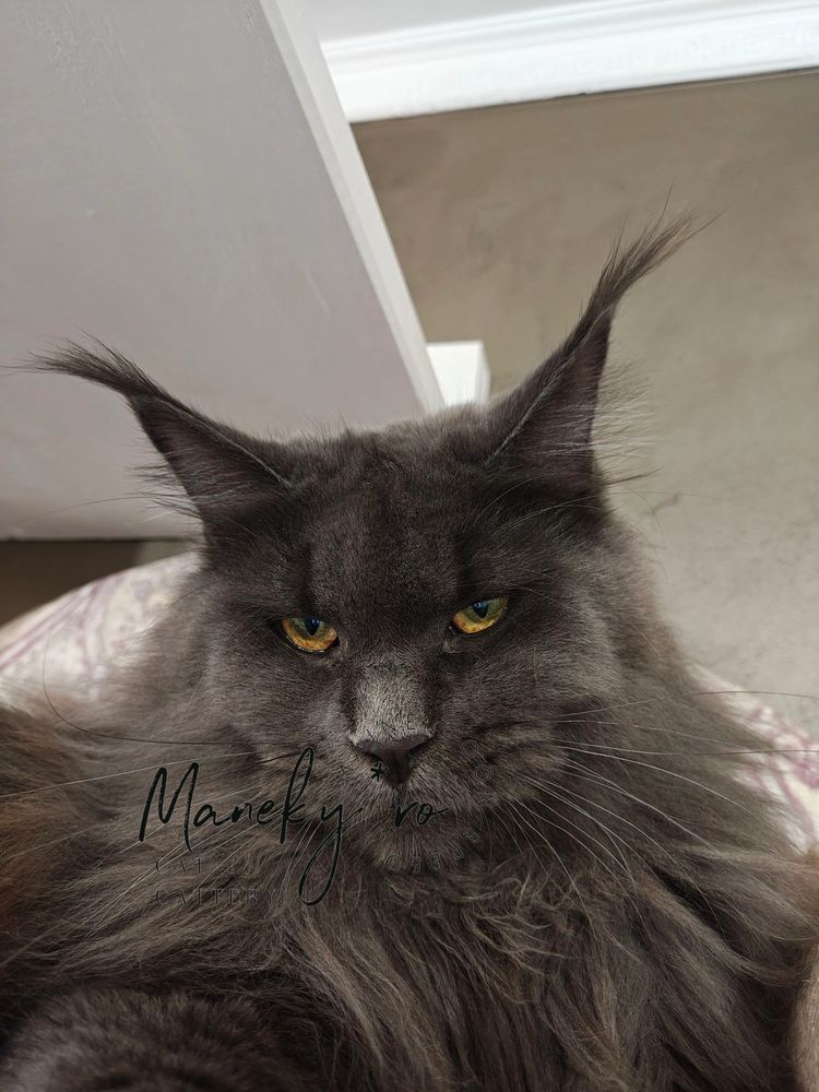 Are you looking for a royal cat, giant and with a gentle character? Then you must discover Maine Coon Blue cats from Maneky Ro! These magnificent cats with special personality are attached to people and will bring joy and love into life.